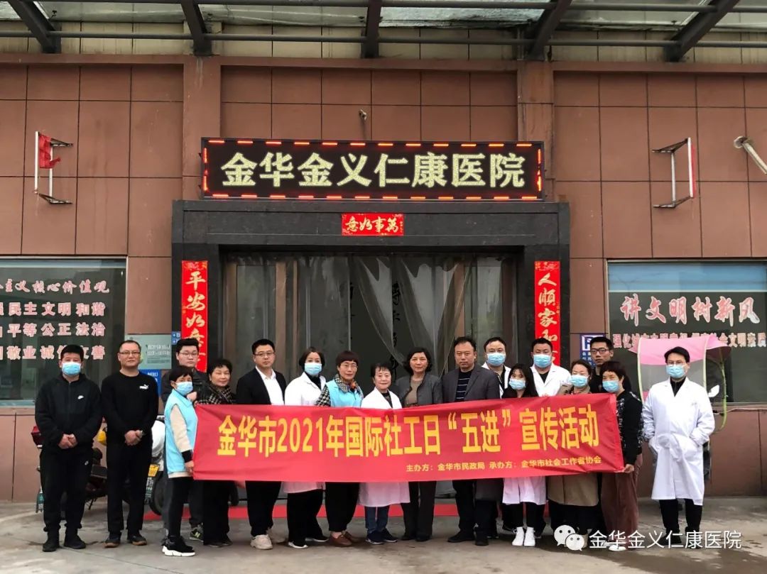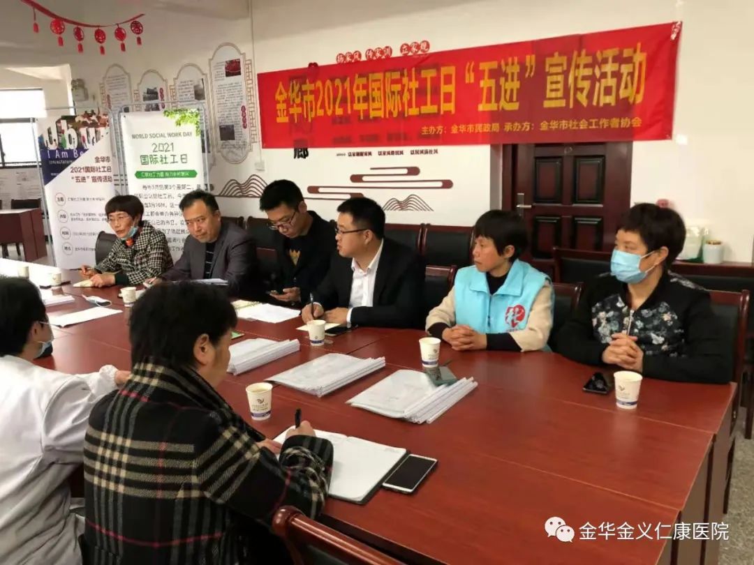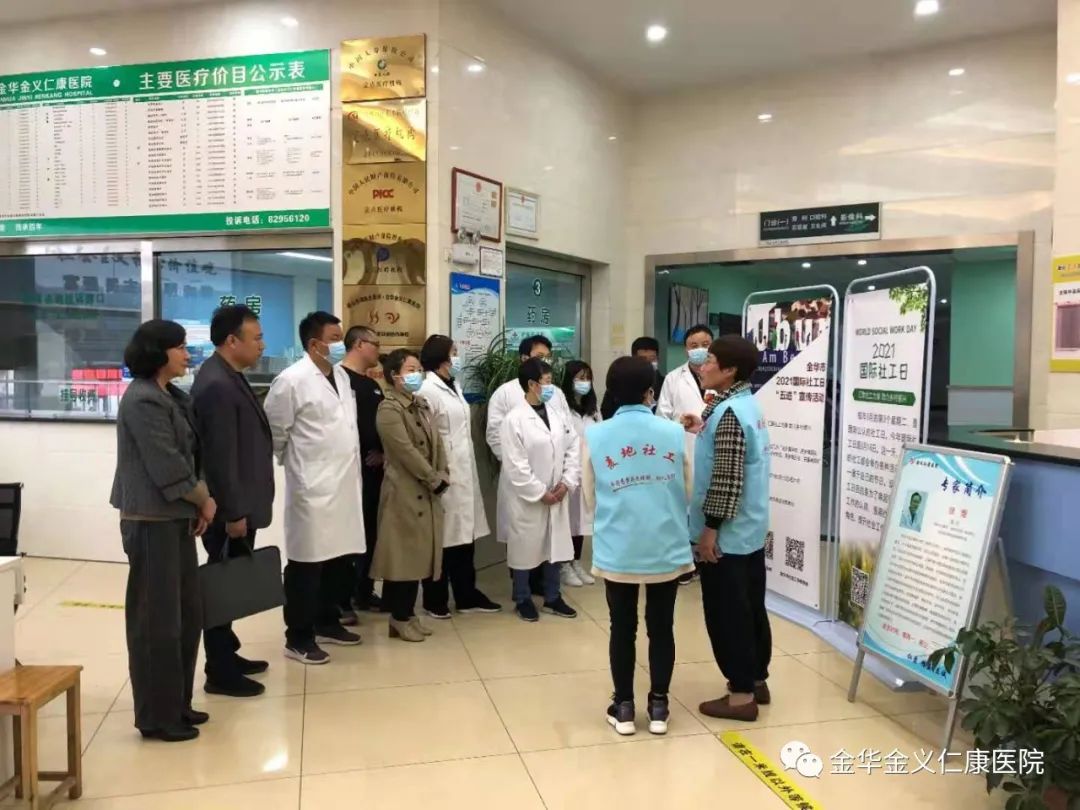 今天是“国际社工日”。下午三时,金华市社会工作总站副站长金兆飞、金华市悦欣社会工作发展服务中心主任刘欣、金华市麦地社会工作服务中心主任朱惠萍等一行九人来我院进行国际社工日“五进”宣传活动。