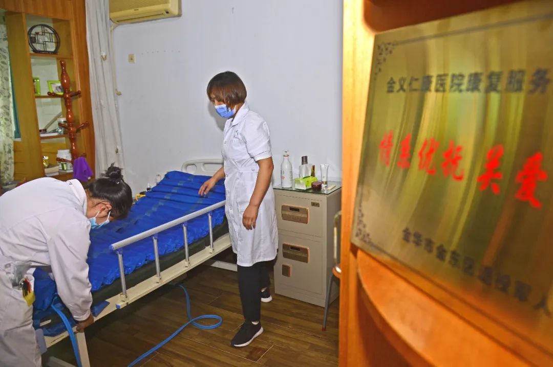 11日,金东区退役军人事务局携金义仁康医院优抚队医护人员到东孝街道东景小区为长期瘫痪在床的孤寡退役军人进行健康服务。为了方便护理,医院免费给她置换了价值医用病床,配备了健康小药箱,医护人员还给她测量血压、心肺听诊、做了DMS理疗和心理疏导。 去年12月,金东区退役军人事务局启动了关爱退役军人健康服务社会化服务项目,在重点优抚对象中筛选了100名有健康需求的优扶对象进行健康服务。